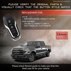 3 Button Smart Proximity Key 315 Mhz for Ford F-150 F-250 Explorer M3N-A2C31243800 164-R8111 R8111 5926057 (Shell Case)
