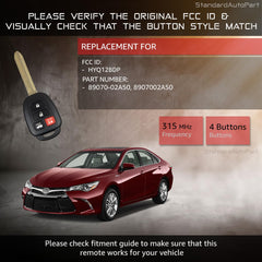 4 Btn Key Fob Remote for Toyota Camry Corolla HYQ12BDP H Chip Canadian Vehicles