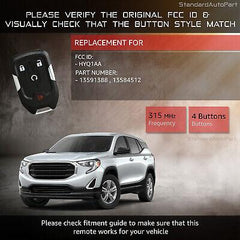 4 Btn Proximity Smart Key for GMC Terrain (2018-2020) HYQ1AA 13584512 13591388
