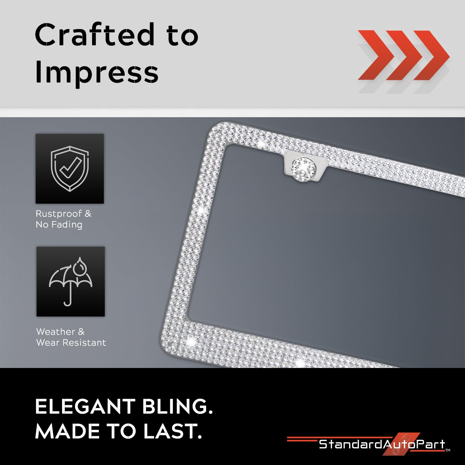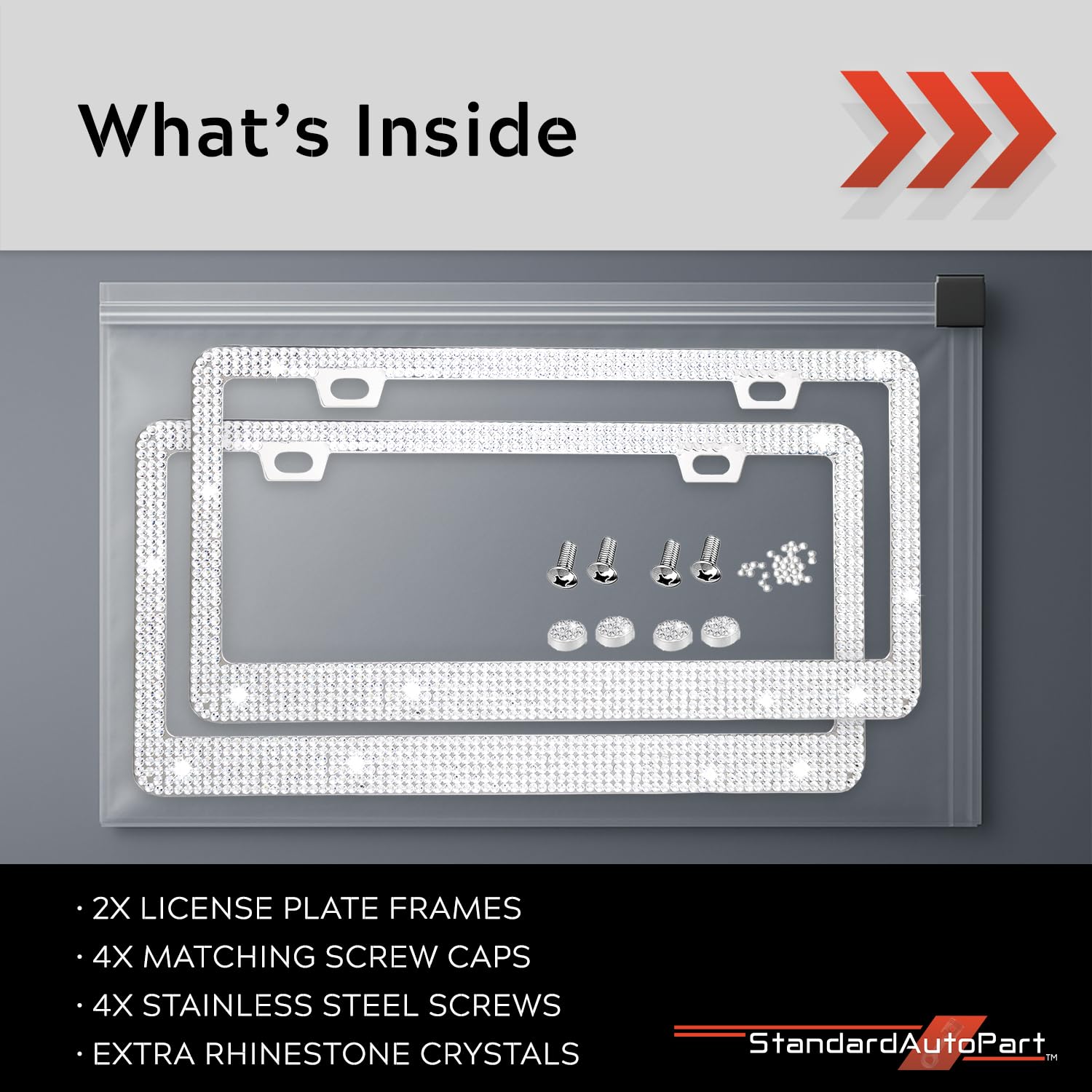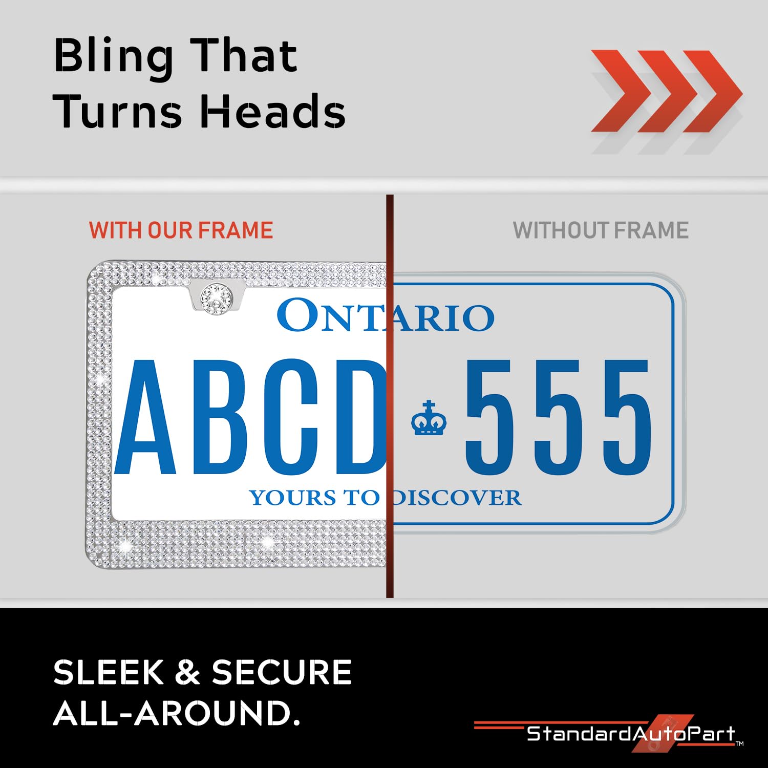 Bling License Plate Frame Sparkly Rhinestone with Screws Stainless Steel Canada SAP-LPF-SILVR-2