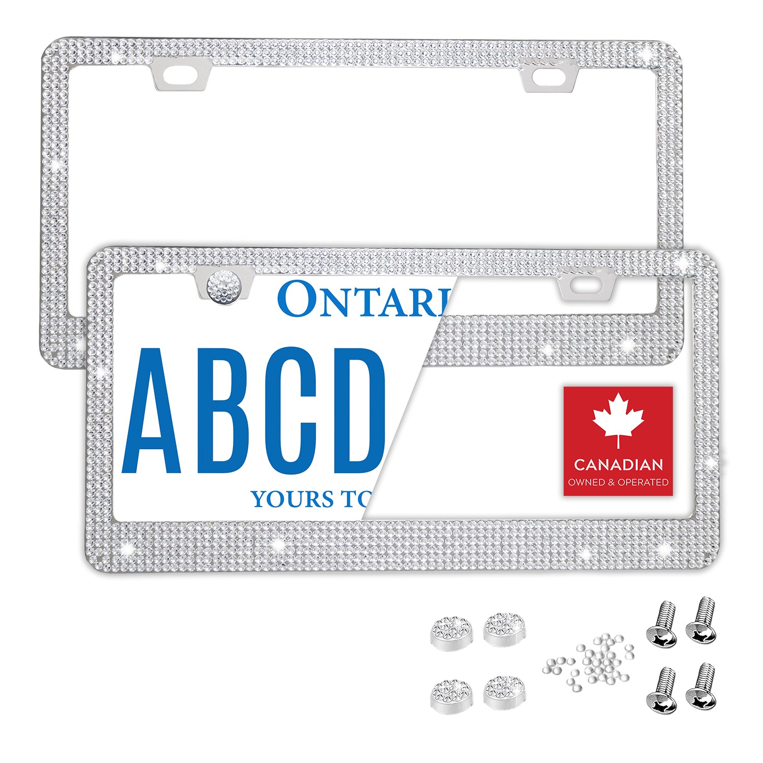 Silver Bling Rhinestone License Plate Frame – Sparkly Crystal Diamond Car Tag Holder, Slim Glitter Bedazzled License Plate Covers, Rust-Free Stainless Steel