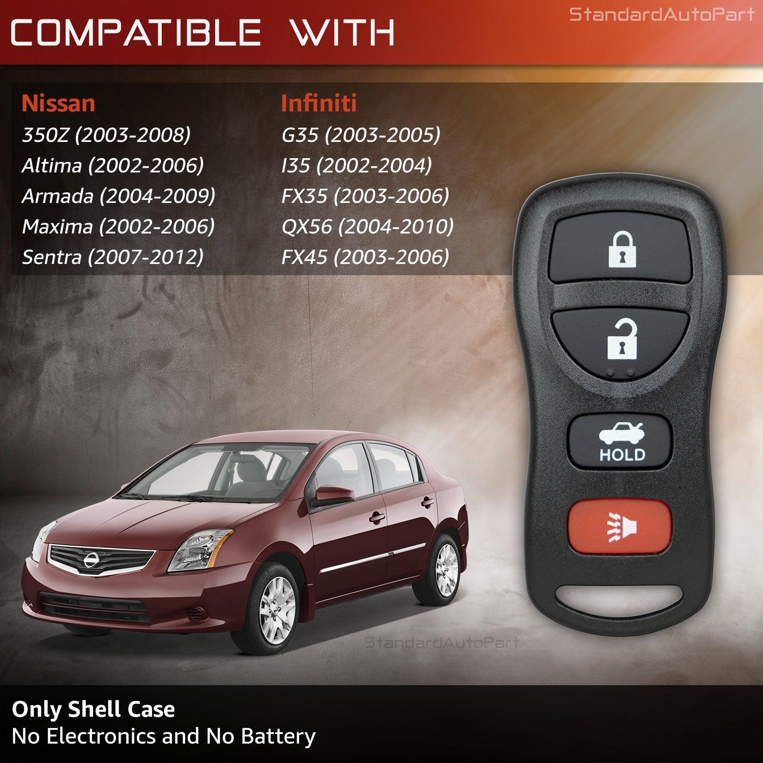 Car Remote Entry Fob for Nissan Frontier Murano Pathfinder Quest Titan Xterra Armada FX35 FX45 QX4 KBRASTU15 (4 Button Shell Case)