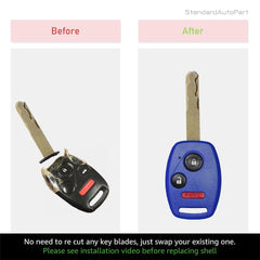 Car Remote Head Key 3 Button Shell Case for Honda Civic Fit CR-V Insight Odyssey Pilot Fit Ridgeline (No Key Cutting Required) (Blue)
