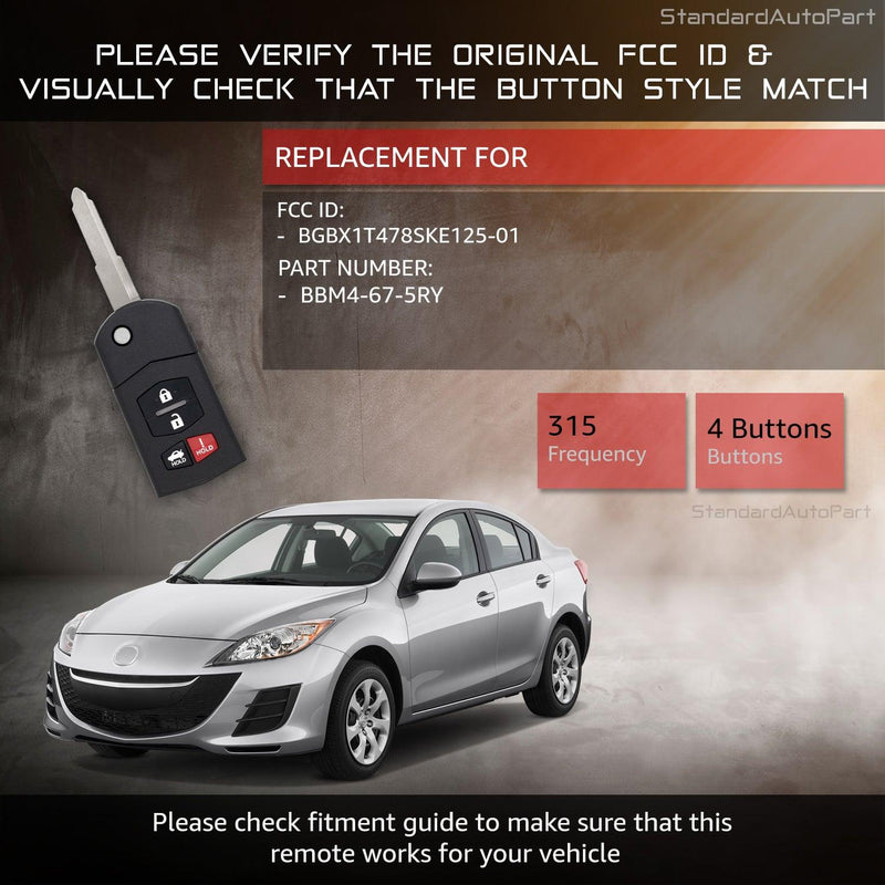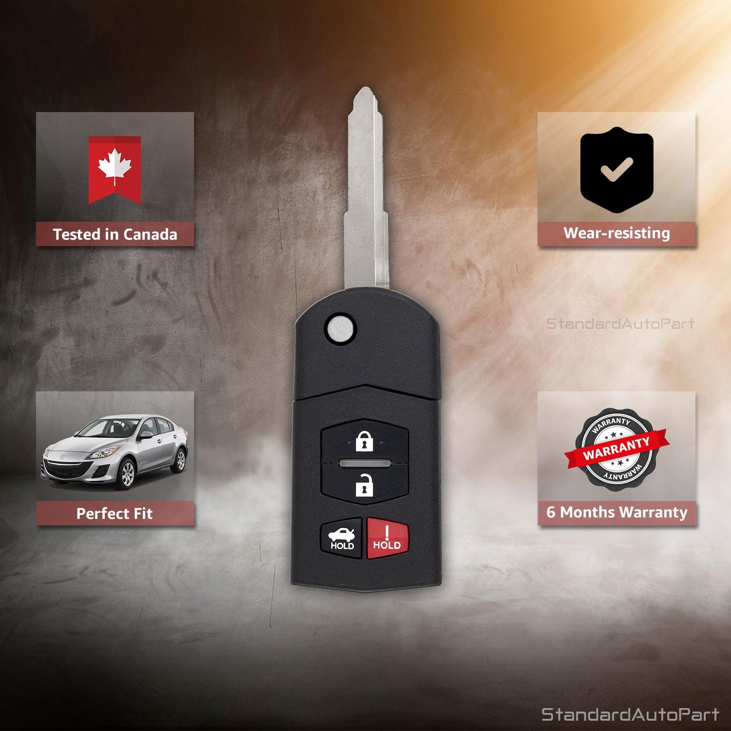 Flip Key Remote Keyless Entry for Mazda 3 6 MX-5 Miata Flip Key BGBX1T478SKE125-01 (Complete Unit)