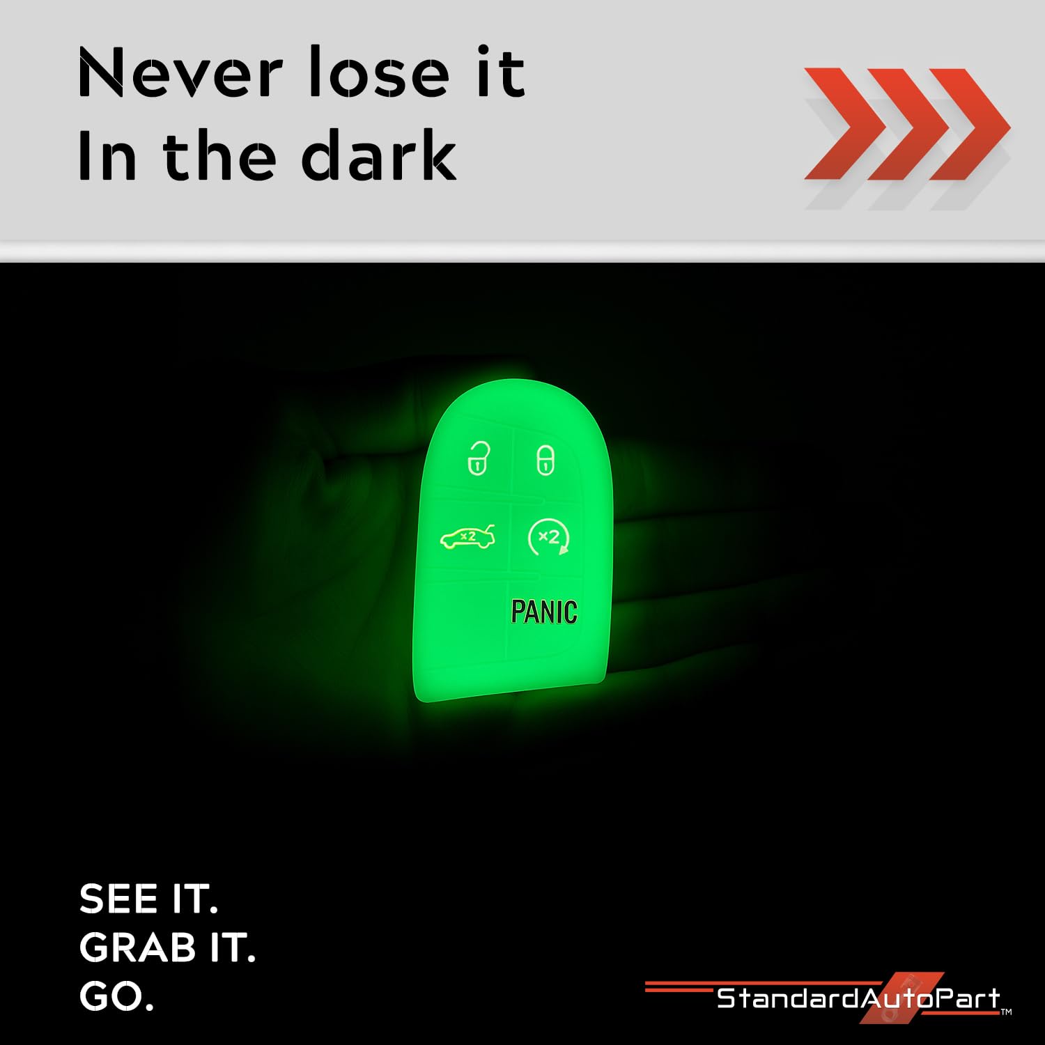 Glow in The Dark Fob Cover for Grand Cherokee Challenger Charger Durango Journey SAP-SIL-DDGE-GLW-GRN(2Pack)