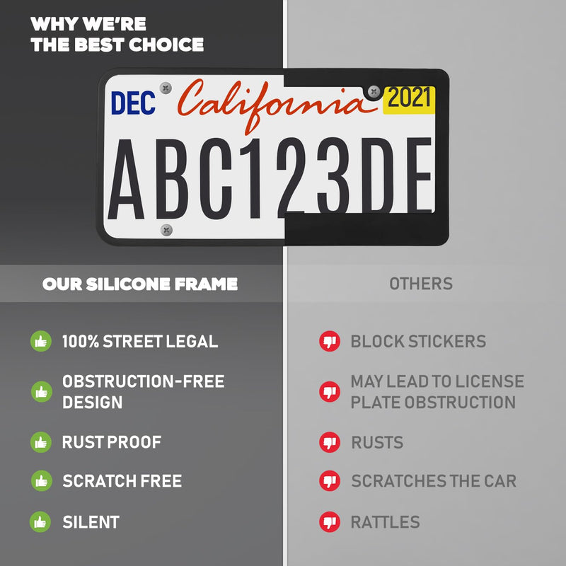 License Plate Frame Bracket Holder Rust, Rattle, Weather-Proof for US and CA SAP-LPF-BLK-1