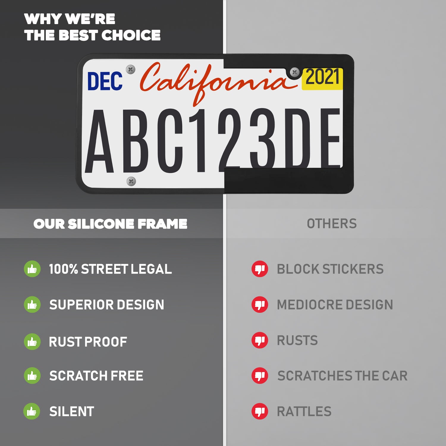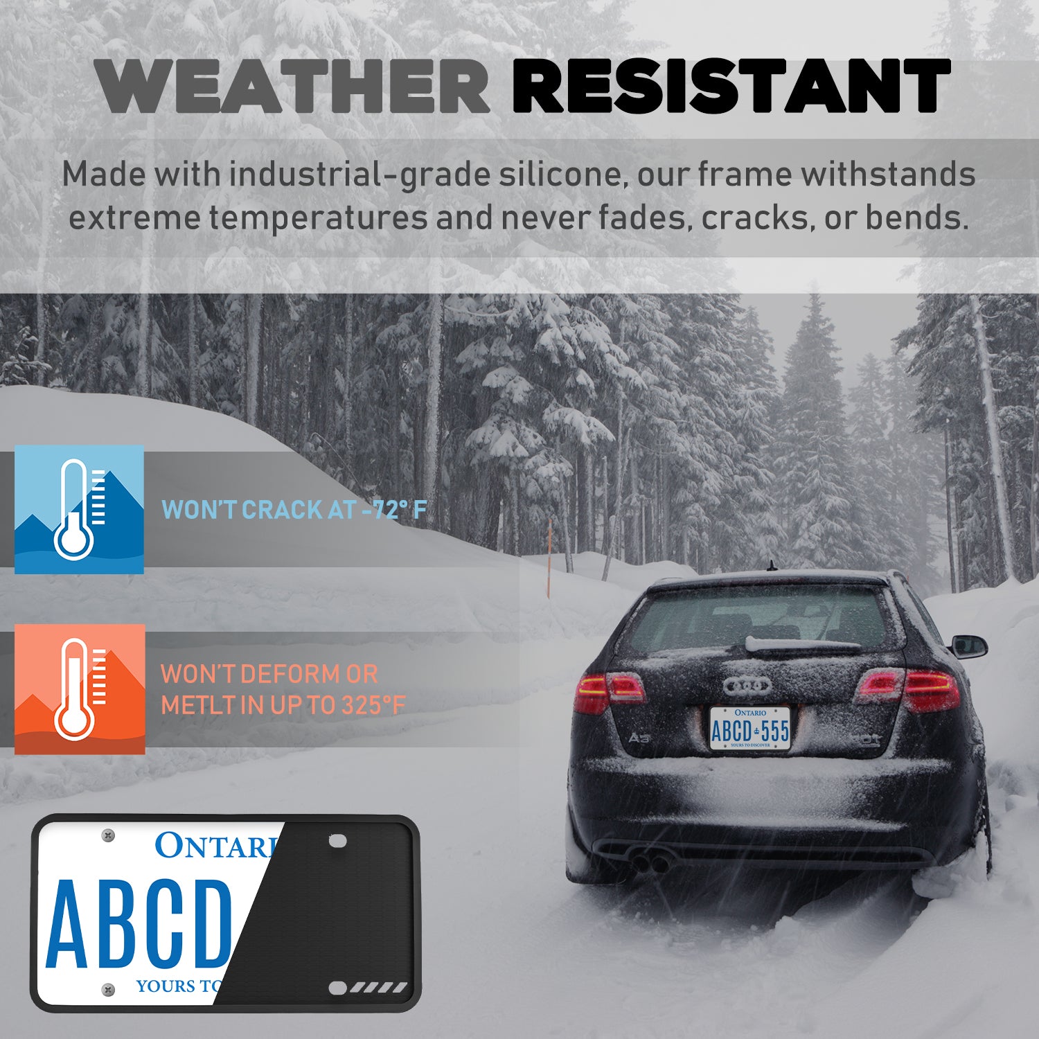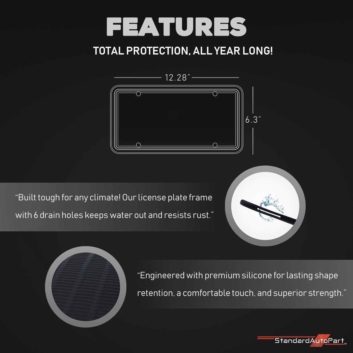 StandardAutoPart Silicone License Plate Frame – Rust-Proof, Rattle-Proof, Weatherproof Cover & Bracket Holder for Front/Rear US & Canada Standard Car Plates