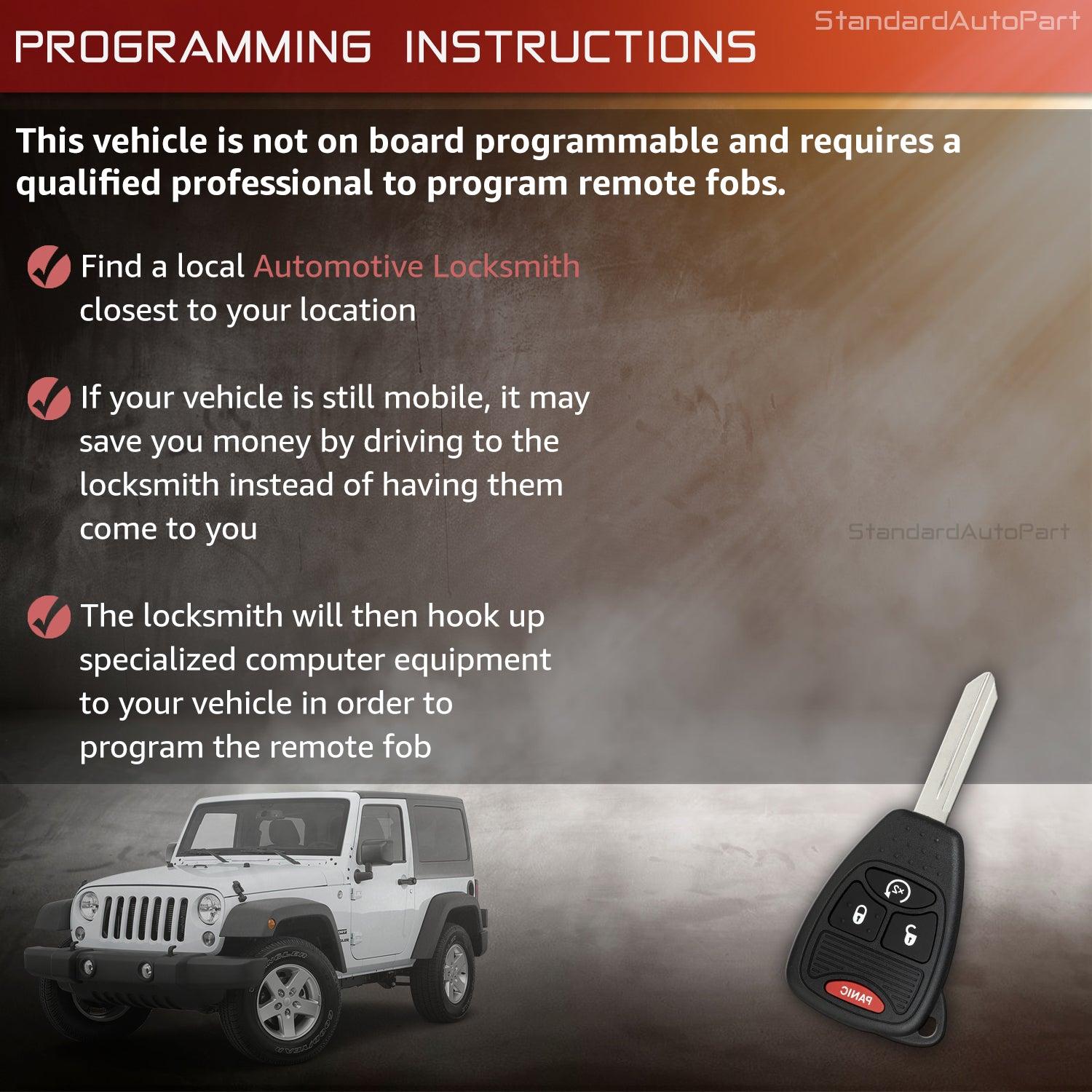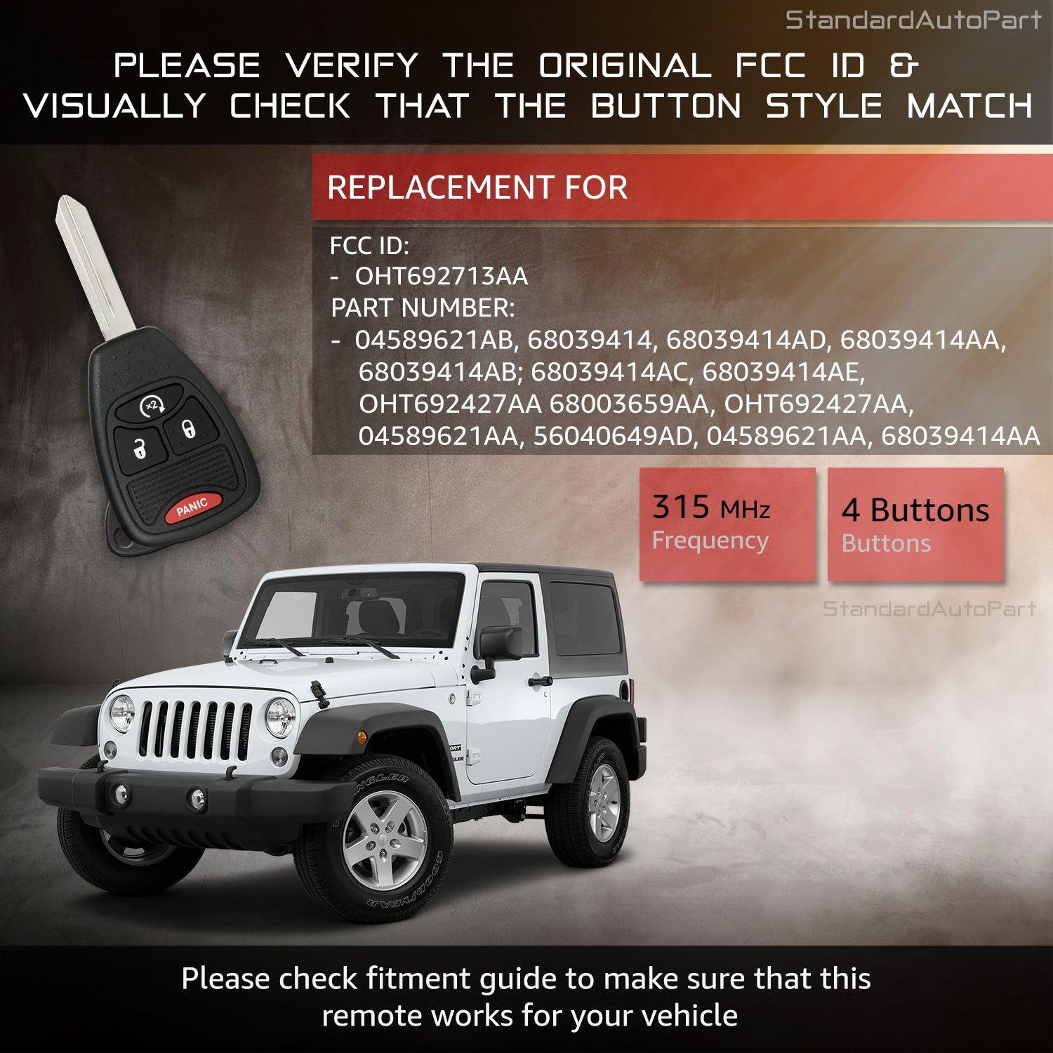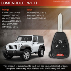 Remote Head Keyless entry for Chrysler PT Cruiser Caliber Durango Ram Nitro Compass Patriot Wrangler 2007 2008 2009 2010 2011 2012 2013 2014 2015 2016 2017 OHT692713AA (Remote Start)