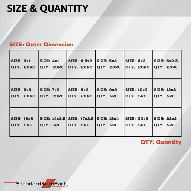 Silicone O-Ring Sealing Gasket Washer for Auto & Plumbling Faucet Repair 225Pcs
