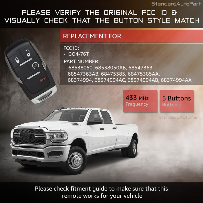Smart Car Key Fob Remote for Ram 2500 3500 4500 5500 GQ4-76T 68374994AB Key