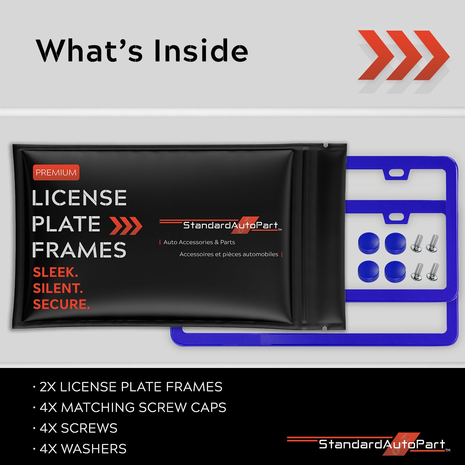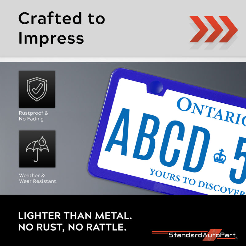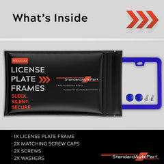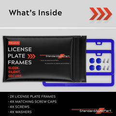 StandardAutoPart Blue Metal Premium License Plate Frame – Rust-Proof, Rattle-Free, Weather-Resistant, Universal Fit Front & Rear, Slim Top & Bottom Design with Screw Caps, Car Tag Holder