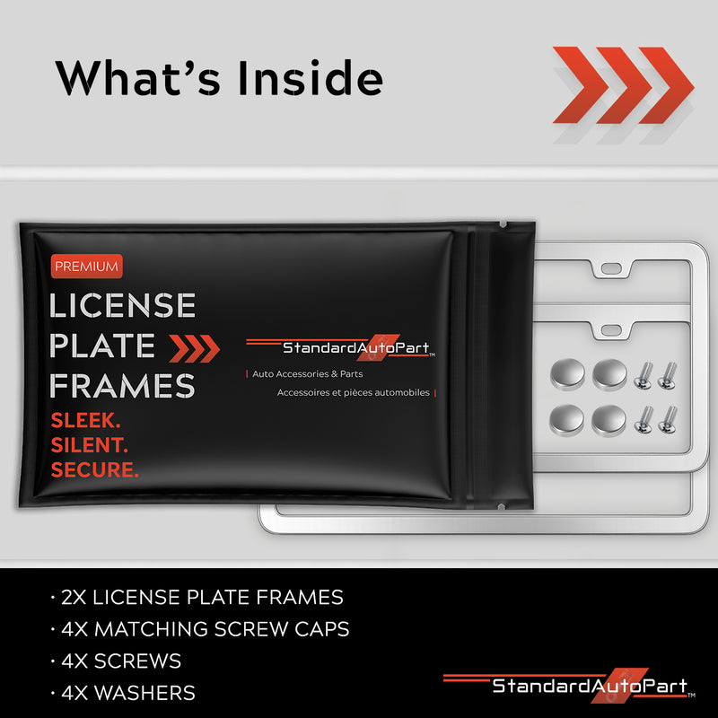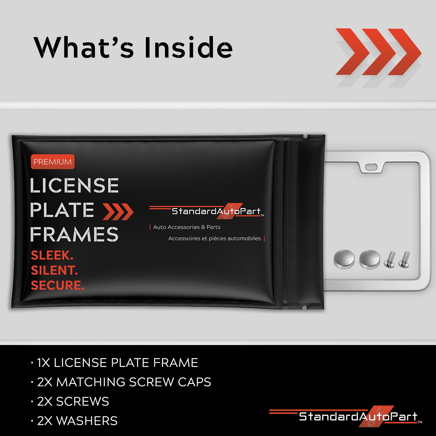 StandardAutoPart Mirror Stainless Steel Polished License Plate Frame – Rust-Proof, Weather-Resistant, Slim Universal Fit Car Tag Holder with Screw Caps