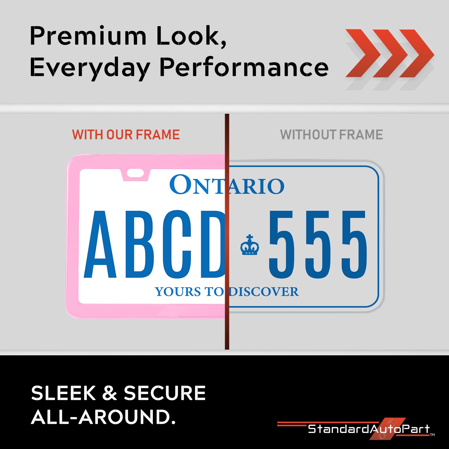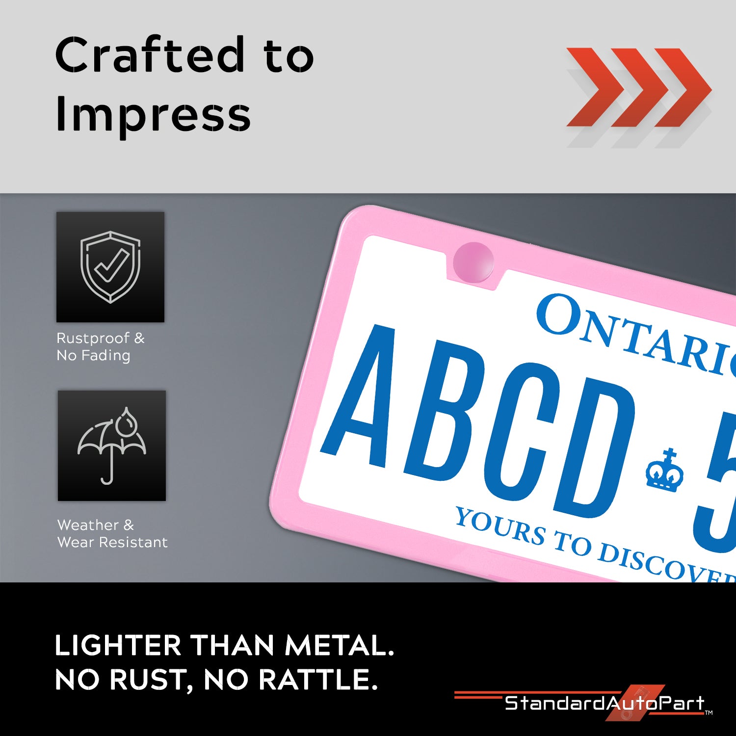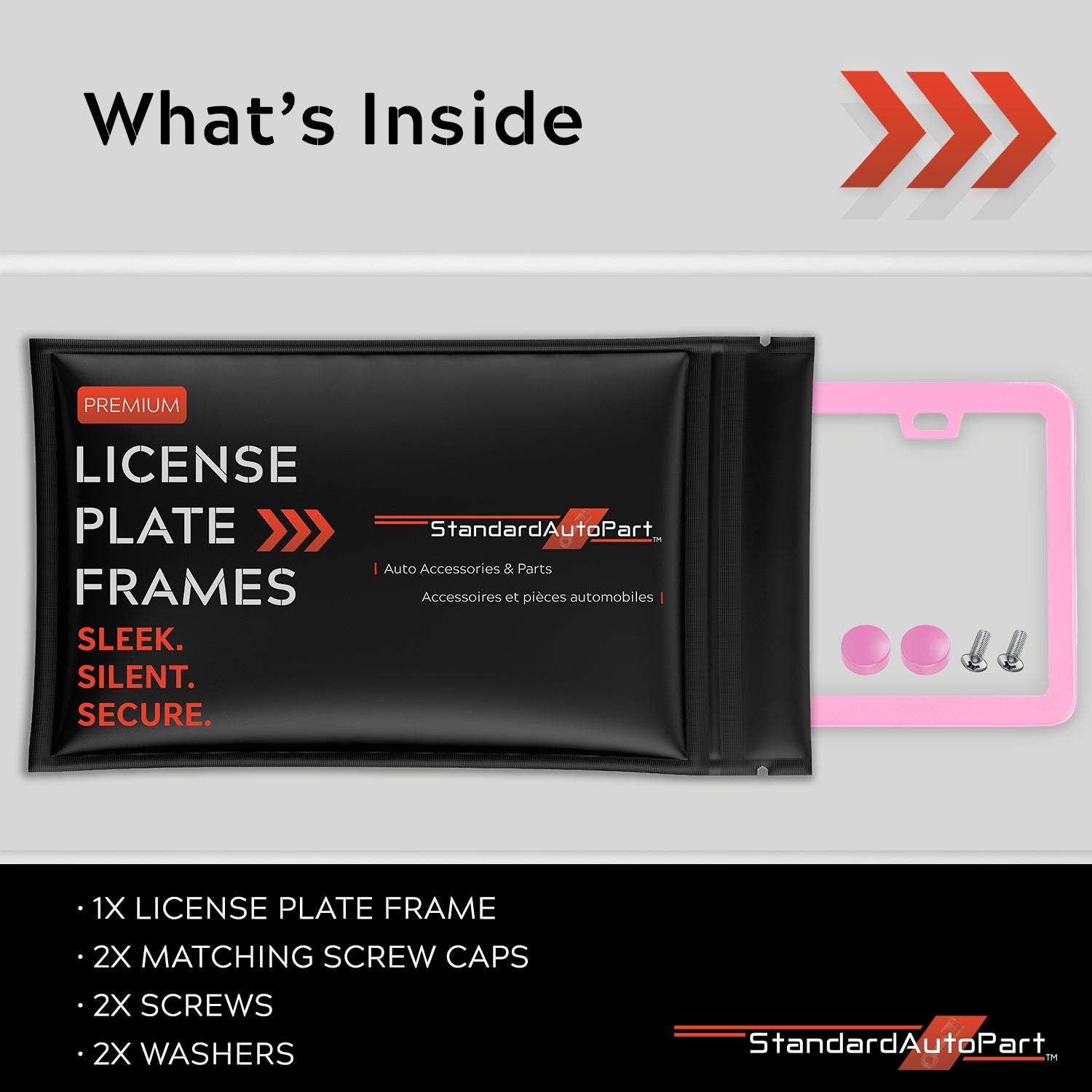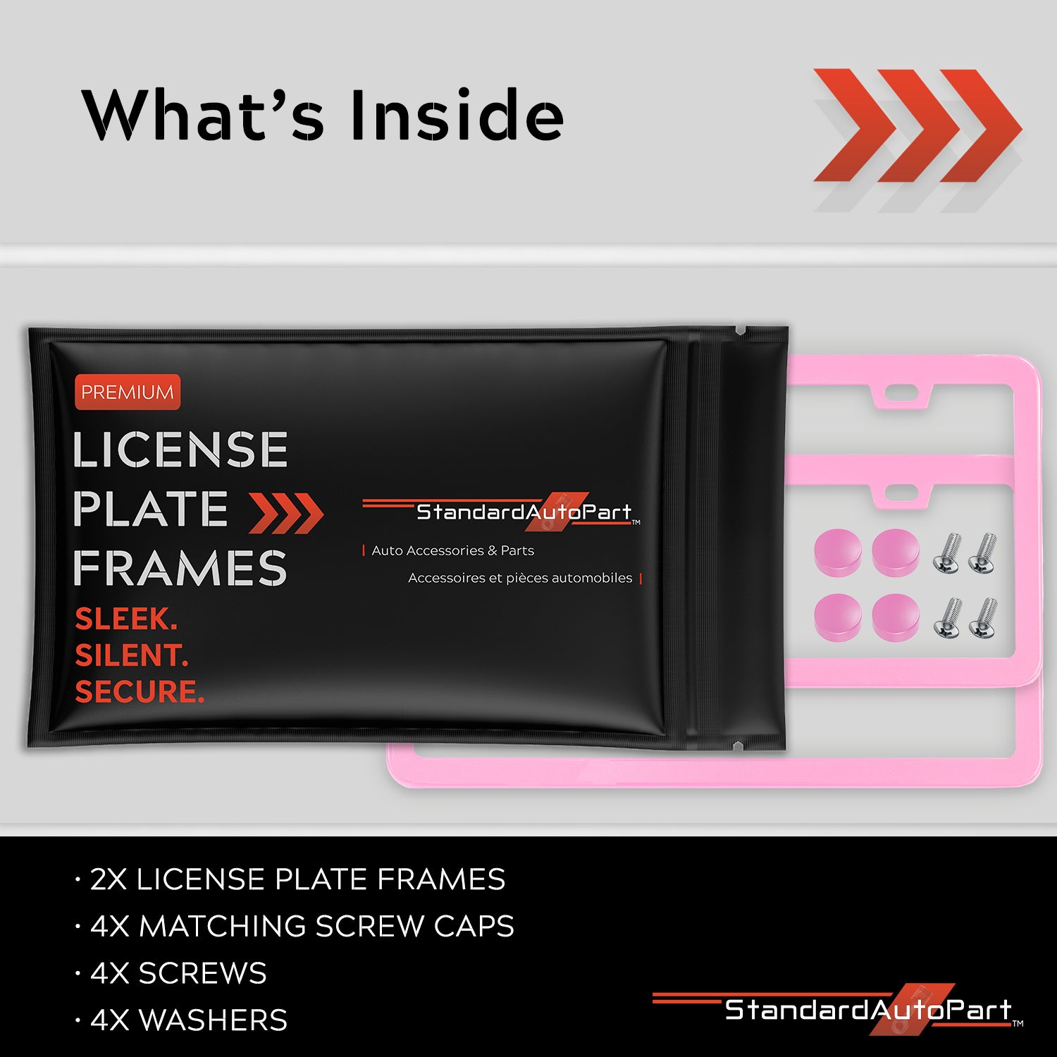 StandardAutoPart Pink Metal Premium License Plate Frame – Rust-Proof, Rattle-Free, Weather-Resistant, Universal Fit Front & Rear, Slim Top & Bottom Design with Screw Caps, Car Tag Holder
