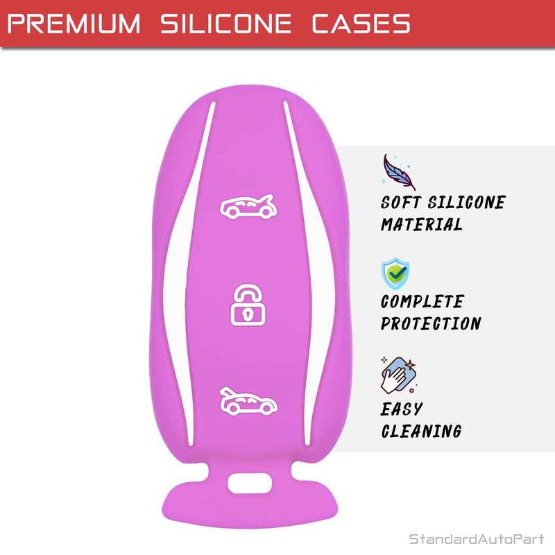 StandardAutoPart Silicone Case for 3 Button Proximity Remote Smart Key Compatible with Tesla Model X (Purple)