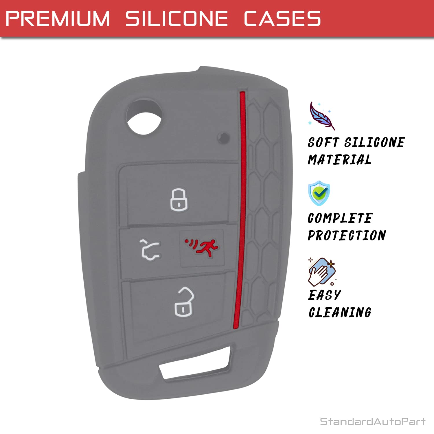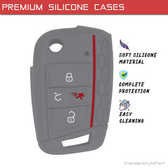 StandardAutoPart Silicone Case for 4 Button Proximity Remote Smart Key Compatible with Volkswagen Golf Jetta GTI (Grey)