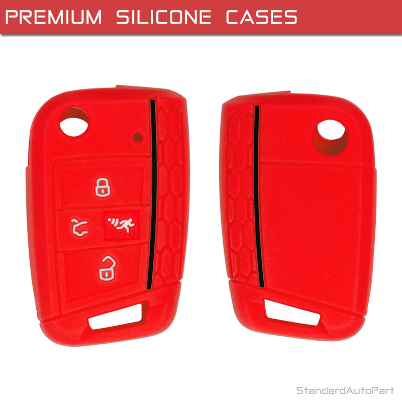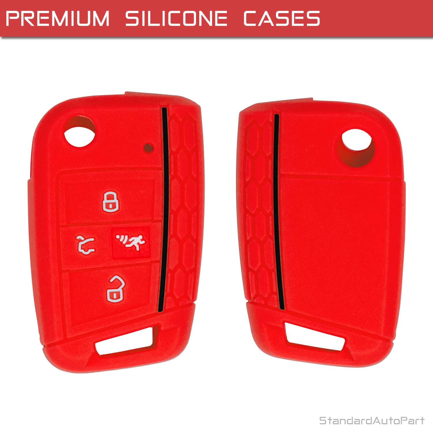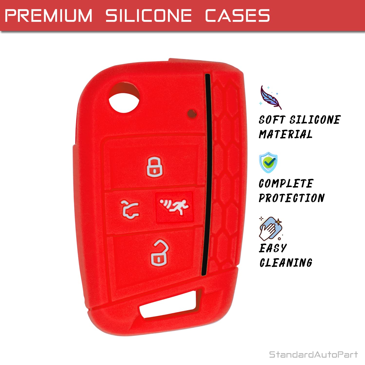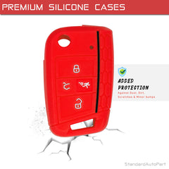 StandardAutoPart Silicone Case for 4 Button Proximity Remote Smart Key Compatible with Volkswagen Golf Jetta GTI (Red)