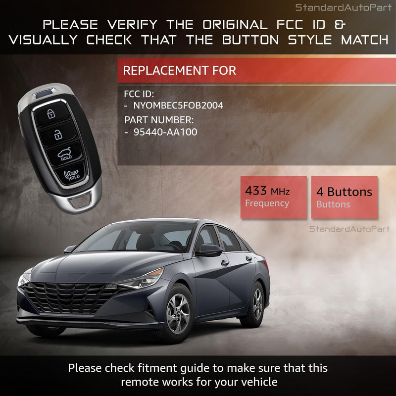 StandardAutoPart Smart Proximity Key Fob Remote Compatible with Hyundai Elantra 2021 2022 2023 2024 NYOMBEC4FOB2004 IC: 3109A-MBEC4FOB204 95440-AA100 (4 Button)
